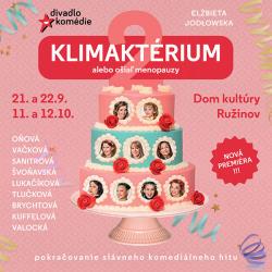 Čo na vás čaká? Množstvo komických situácií, oslobodzujúci smiech a nejedno prekvapenie. Úplne nové, melodicky chytľavé pesničky s vtipnými textami, ktoré si budete neustále pospevovať. Úsmevná choreografia, malebná dekorácia, fantastické kostýmy. Ale predovšetkým nespútaná, nákazlivá, jedinečná energia, ktorú herečky svojou hrou vytvárajú na javisku a delia sa o ňu s divákmi v sále. Mnohé z nich z predchádzajúceho Klimaktéria dôverne poznáte. Pripoja sa k nim aj nové tváre, s ešte väčšou energiou a odhodlaním vytvoriť neopakovateľný zážitok z tohto predstavenia. Všetky protagonistky tejto inscenácie sú originálne a nezameniteľné osobnosti. Ženy s veľkým srdcom!