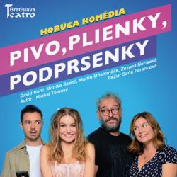 Pivo, plienky, podprsenky je absolútne nový žáner - jedná sa o Hot Summer Comedy a darmo by ste ho v divadelných učebniciach hľadali. Jeden horúci, letný podvečer, rozlúčka so slobodou a nečakaný darček - striptérka Linda. Páni zostávajú z Lindinho talentu vo vytržení, no do bytu ženícha sa vracia jeho drahá polovička, ktorá je v deviatom mesiaci tehotenstva a posledné, čo potrebuje je Lindine "vystúpenie", preto ju páni ukrývajú v detskej izbe, no tento byt je príliš malý, aby ukryl Lindin talent a nadanie. Je dosť možné, že dôjde ku spoločnej konfrontácii budúcej mamičky a ťažko pracujúcej striptérky a to by ani jeden z dotyčných pánov nemusel prežiť bez ujmy. Stupňujúce sa napätie spôsobuje, že introvertný Miro je ešte čudnejší ako doteraz, budúci ženích Roman sa príliš podozrivo potí, tehotná Miška už tuší, že sa niečo deje a Linda je pripravená podať životný výkon...