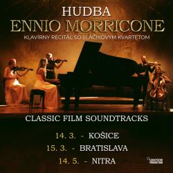 Klavírny recitál filmovej hudby Ennio Morricone! Ennio Morricone za svoj život zložil nespočet úchvatných hudobných diel a svojou charakteristickou atmosférou sa naveky odtlačil do sveta filmovej hudby. A to prevažne vďaka svojej tvorbe pre staré aj novšie Westernové filmy.
